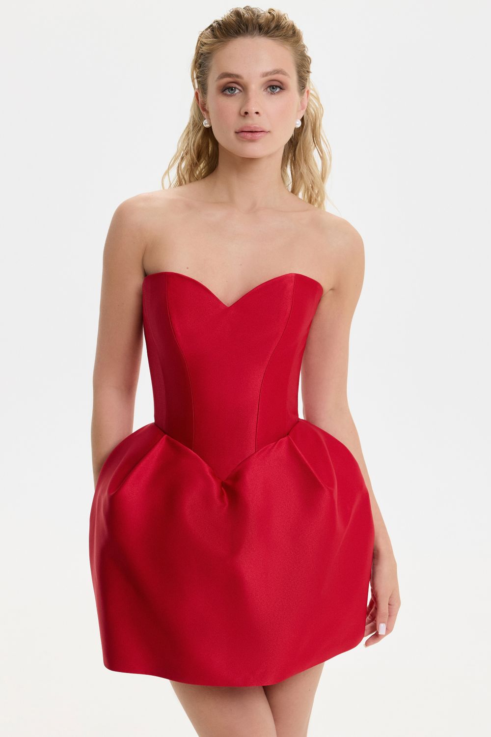 - В тренде все оттенки коричневого, бордовый, изумрудный, темно-синий и, конечно же, классический черный. Для тех, кто не боится ярких красок, подойдут платья насыщенного красного цвета.
